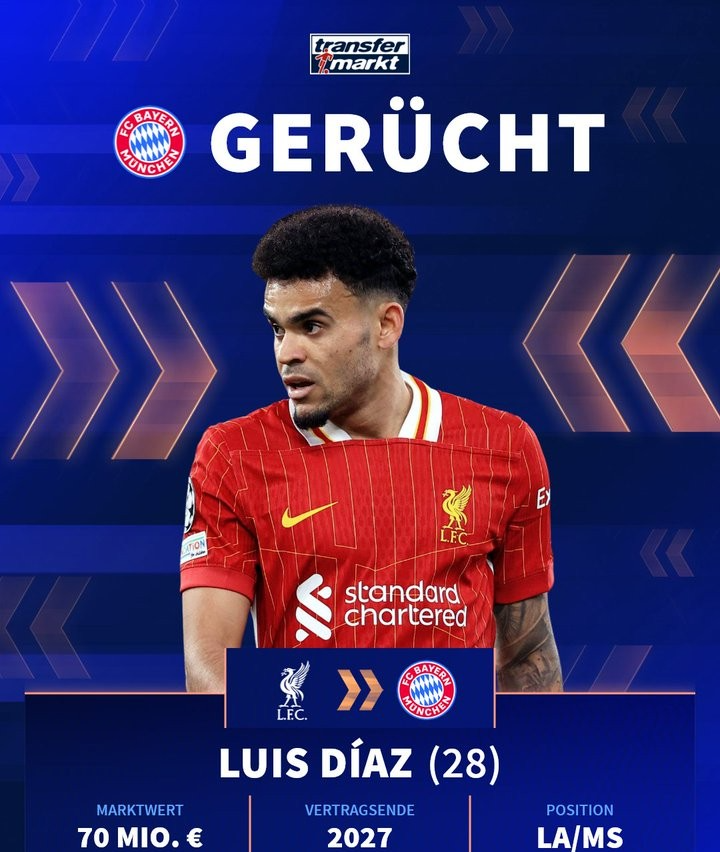 只是,这哥俩的要价还都不便宜--《图片报》的报道,斯图加特要价8000万欧而拜仁只愿出5000万,3000万欧的差距,只怕不太好谈判;迪亚斯的情形也差不多,最新消息显示拜仁已向利物浦开出了5200万欧的报价,但英超冠军的标价也是8000万欧!